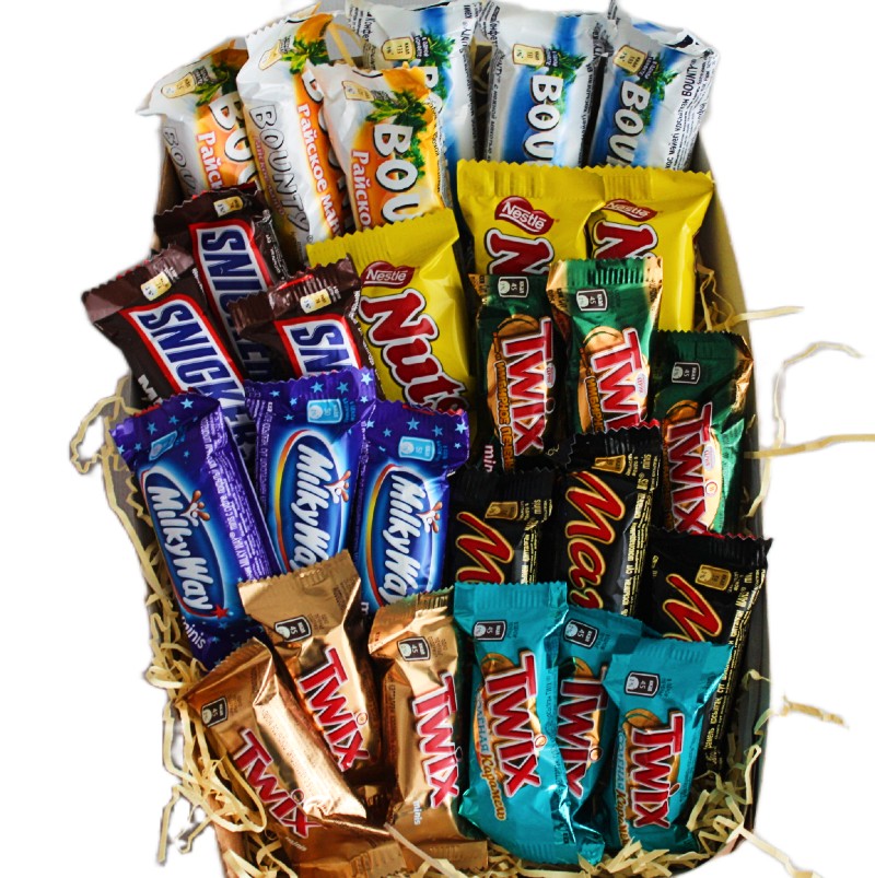 Подарочный набор шоколада Сникерс, Баунти, Твикс