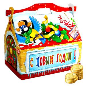 Красивая упаковка с символом года и конечно же любимые конфеты и сладости для самых маленьких.